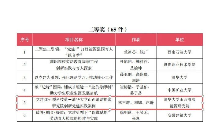 近日,全国能源类学院党建思政工作组织委员会公布了2025年度全国能源类学院党建思政优秀工作案例获奖名单,由我院党支部申报的《党建红引领科技蓝—清华大学山西清洁能源研究院创新党建实践案例》获评二等奖。