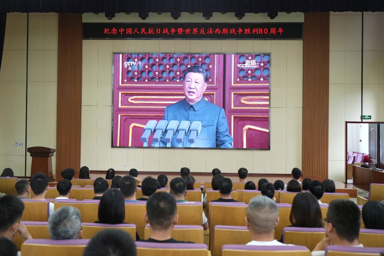 铭记历史是砥砺前行的力量源泉,缅怀先烈是接续奋斗的精神坐标。9月3日上午,纪念中国人民抗日战争暨世界反法西斯战争胜利80周年大阅兵在北京天安门广场隆重举行。清华大学山西清洁能源研究院党支部组织全体党员和职工在报告厅集中观看阅兵仪式直播。认真学习习近平总书记在纪念中国人民抗日战争暨世界反法西斯战争胜利80周年大会上的重要讲话精神,铭记历史,缅怀先烈,珍爱和平、开创未来。中国人民抗日战争是世界反法西斯战争的重要组成部分,中国人民以巨大的民族牺牲,为拯救人类文明、保卫世界和平作出了重大贡献。