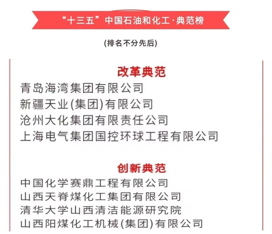 盘点中国石油和化工行业“十三五”期间取得的成就,为推广化工企业和园区在改革发展、绿色发展、科技创新、品牌打造方面的典型经验,盛典发布了“十三五”中国石油和化工·典范榜,包括改革典范、品牌典范、创新典范和绿色发展典范,57家单位上榜。清华大学山西清洁能源研究院上榜“十三五”中国石油和化工典范榜·创新典范。