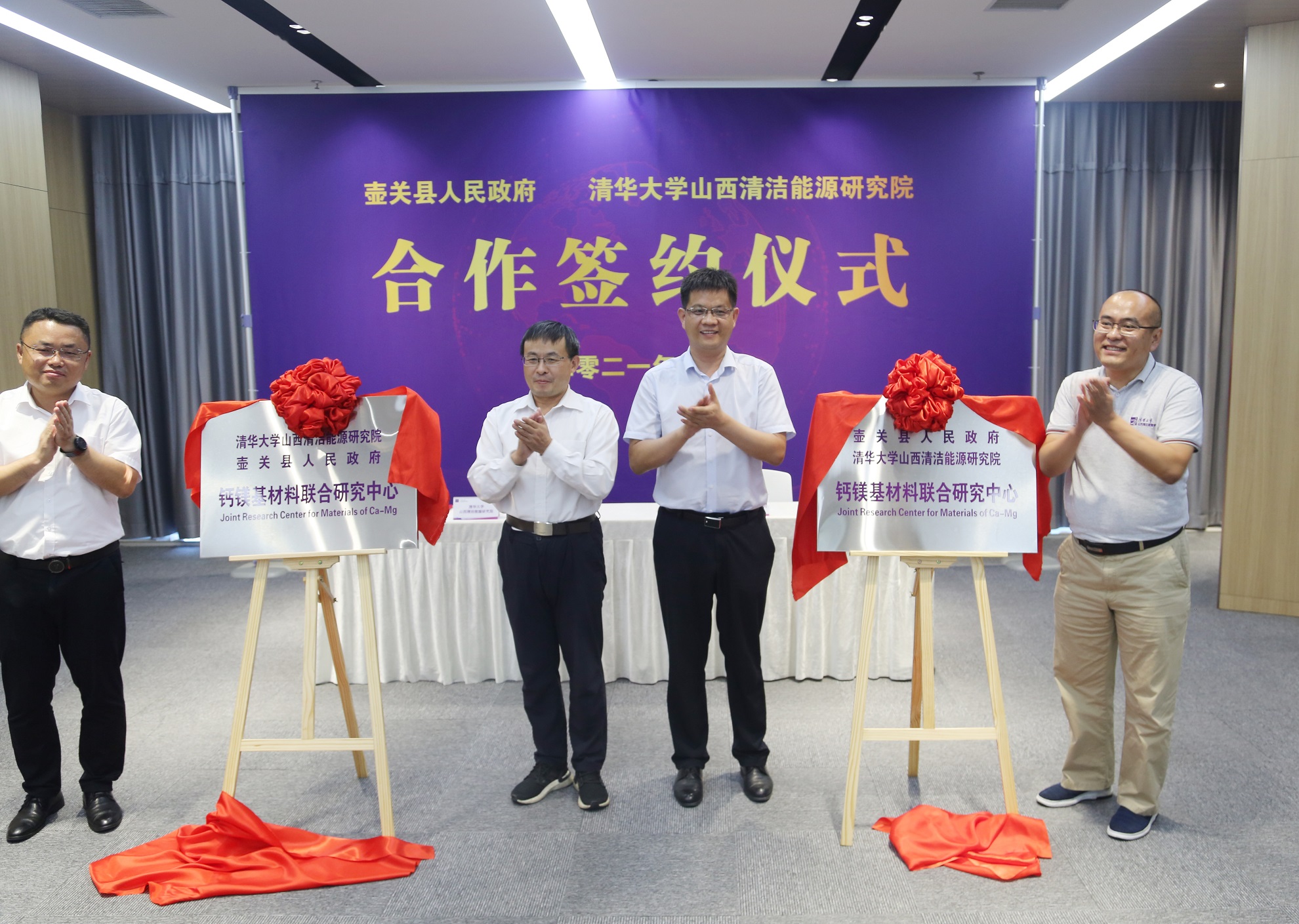 2021年8月24日,清华大学山西清洁能源研究院与壶关县人民政府关于共建钙镁基材料联合研究中心的签约仪式在我院举行。山西省长治市壶关县县委书记张宏方、壶关县县委副书记、县长李杰,清华大学山西清洁能源研究院常务副院长张建胜、污染物控制与资源化技术中心主任由长福等出席签约仪式。